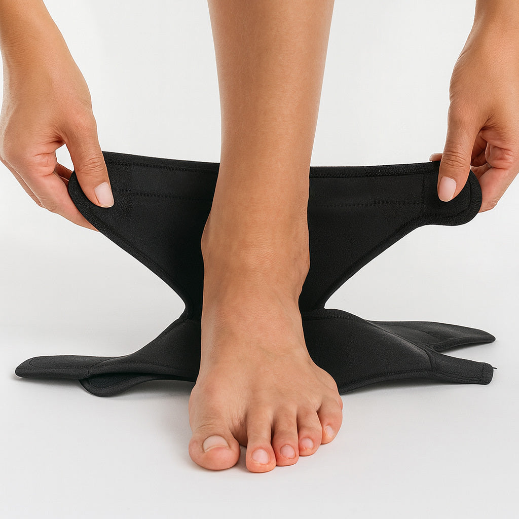 360° compression wraps evenly around the entire ankle joint, stabilizing loose ligaments without preventing natural movement. The neoprene material applies consistent pressure that supports side-to-side stability while allowing your foot to flex, point, and rotate normally.