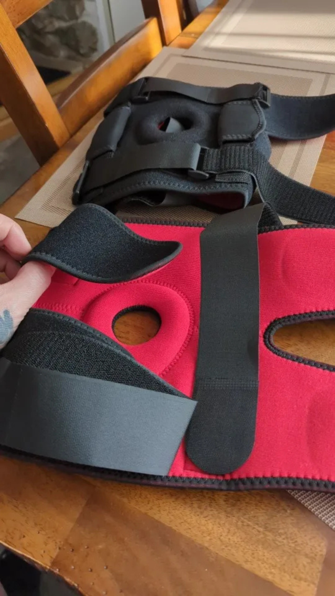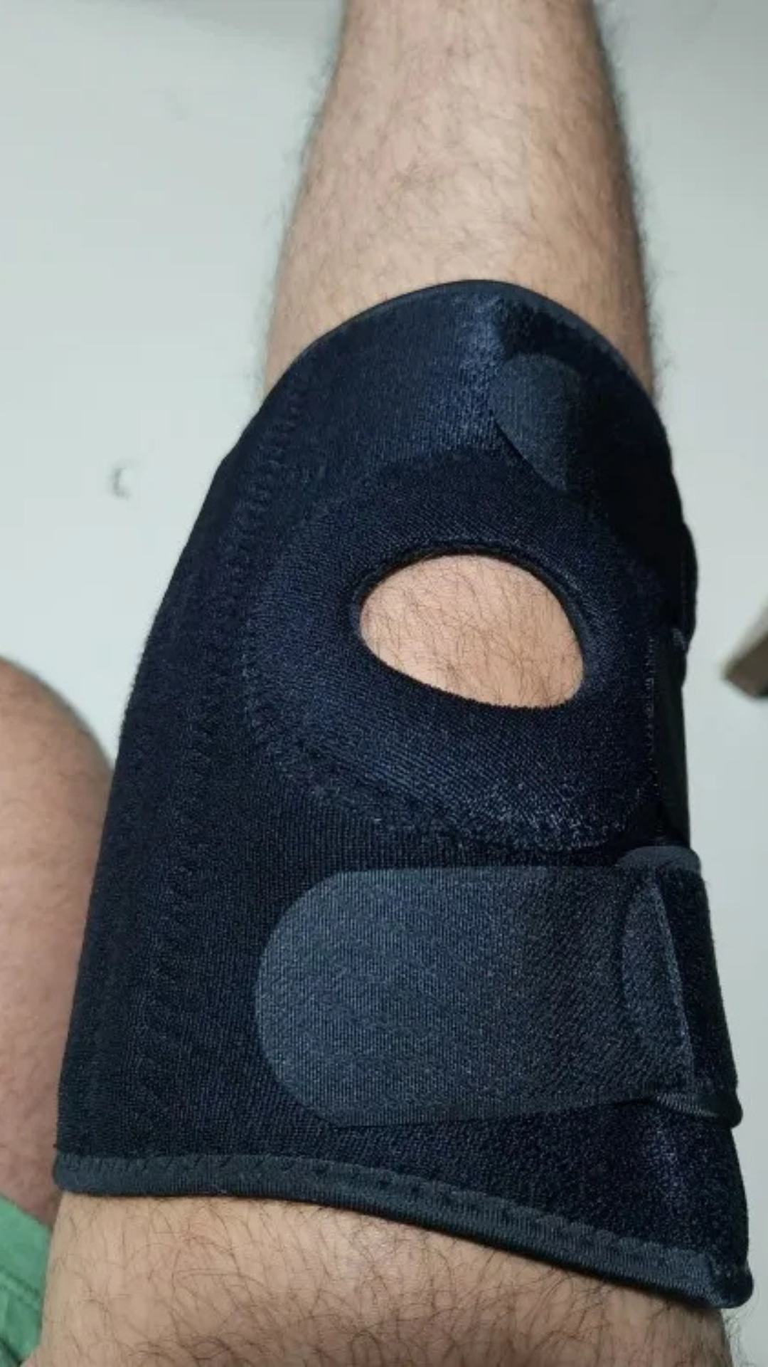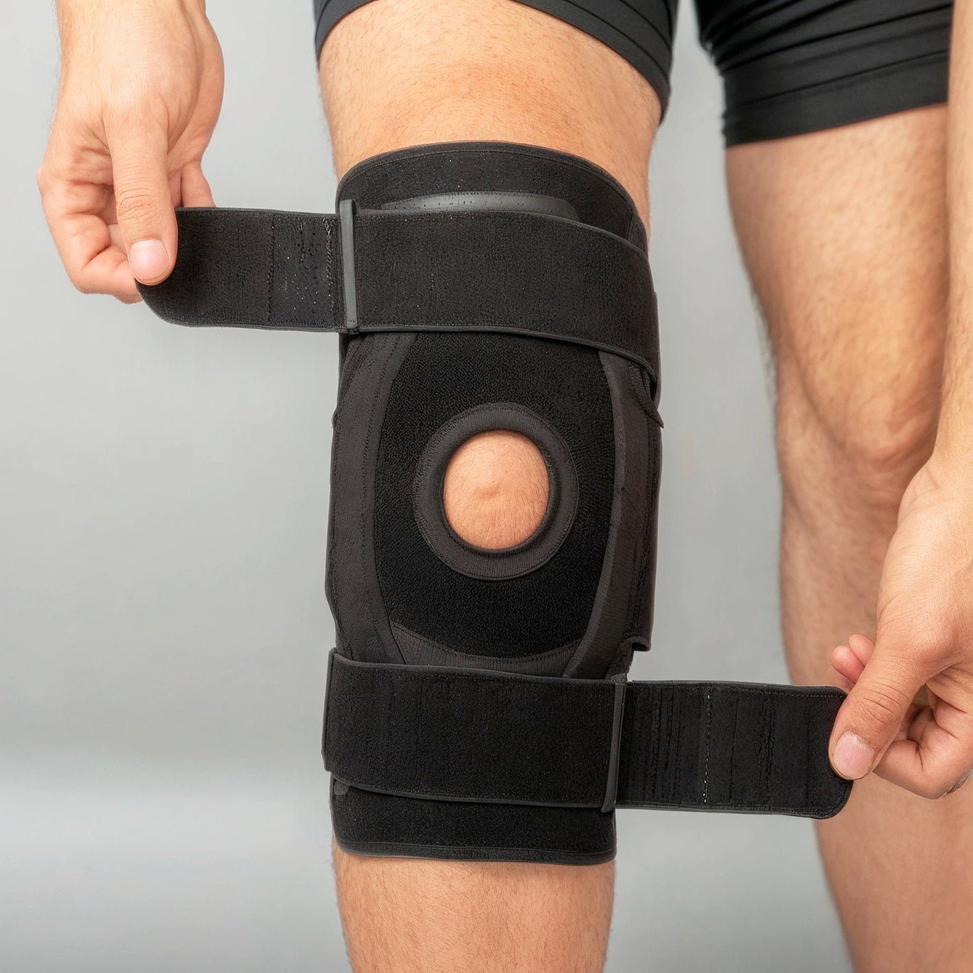 Measure your thigh circumference 4 inches above your kneecap to determine your size. S/M fits thighs 30-45cm (11.8"-17.7") and L/XL fits 45-60cm (17.7"-23.6"). The open patella design (circular cutout over kneecap) accommodates different knee shapes while the adjustable straps let you fine-tune the fit regardless of exact measurements. When in doubt, size up for comfort.