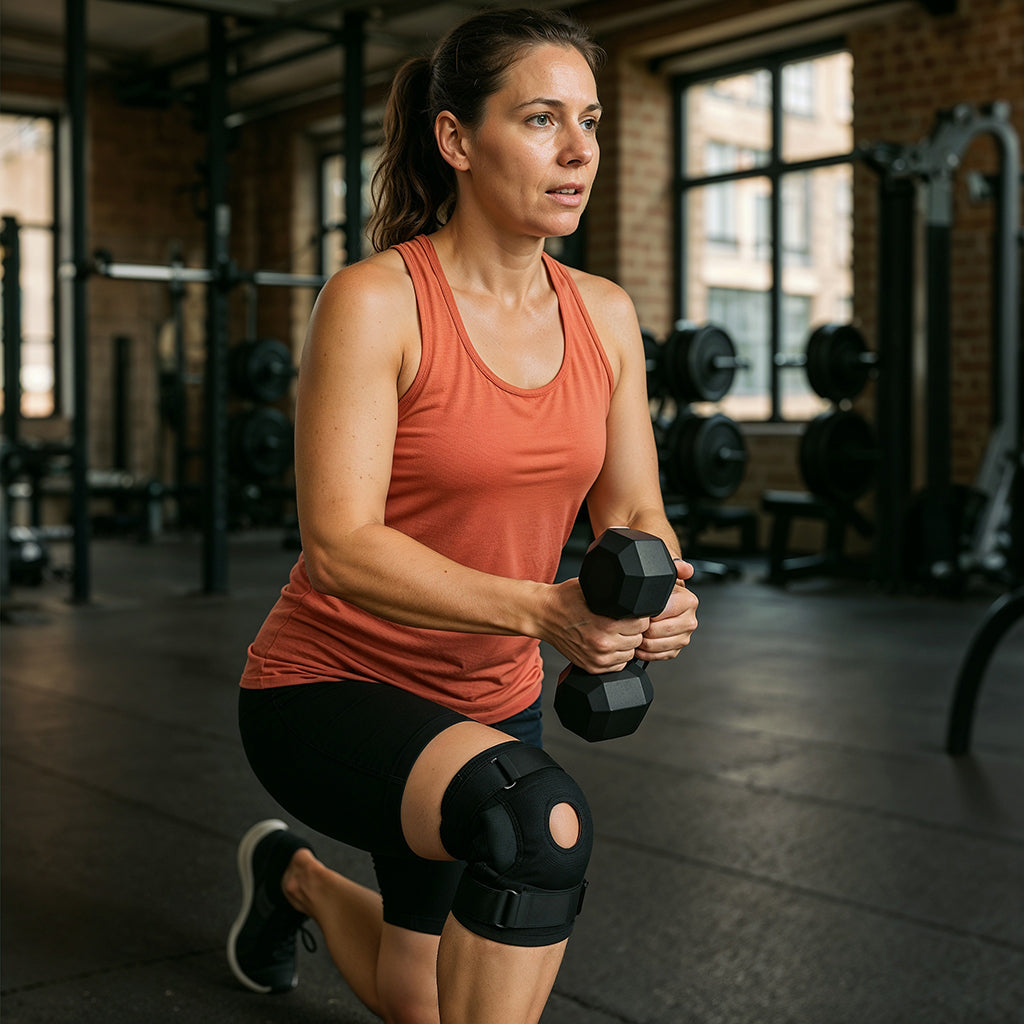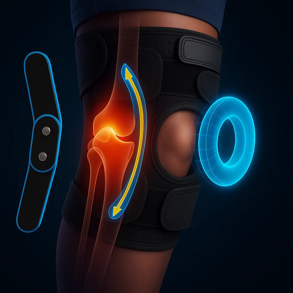The wraparound compression design applies even pressure around your entire knee joint—not just front and back. This all-around support stabilizes the patella (kneecap) and reduces stress on ligaments and tendons during movement.