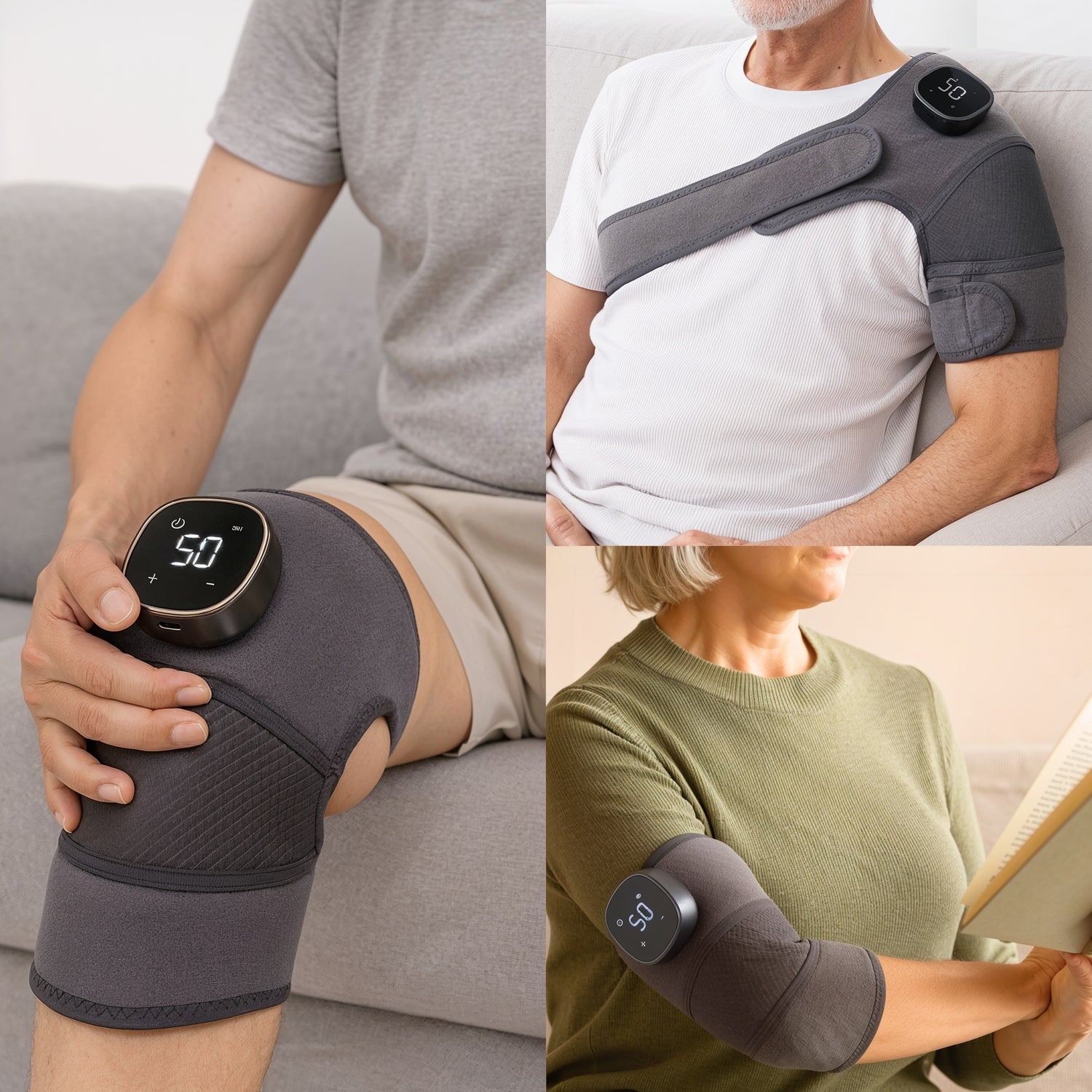 The included extension belt lets you wrap the massager around larger joints like shoulders and elbows—not just knees. This makes it a versatile 3-in-1 therapy device for anyone dealing with joint pain in multiple areas. The adjustable velcro straps conform to different body shapes and sizes, and the soft fabric prevents irritation during extended 15-30 minute sessions.
