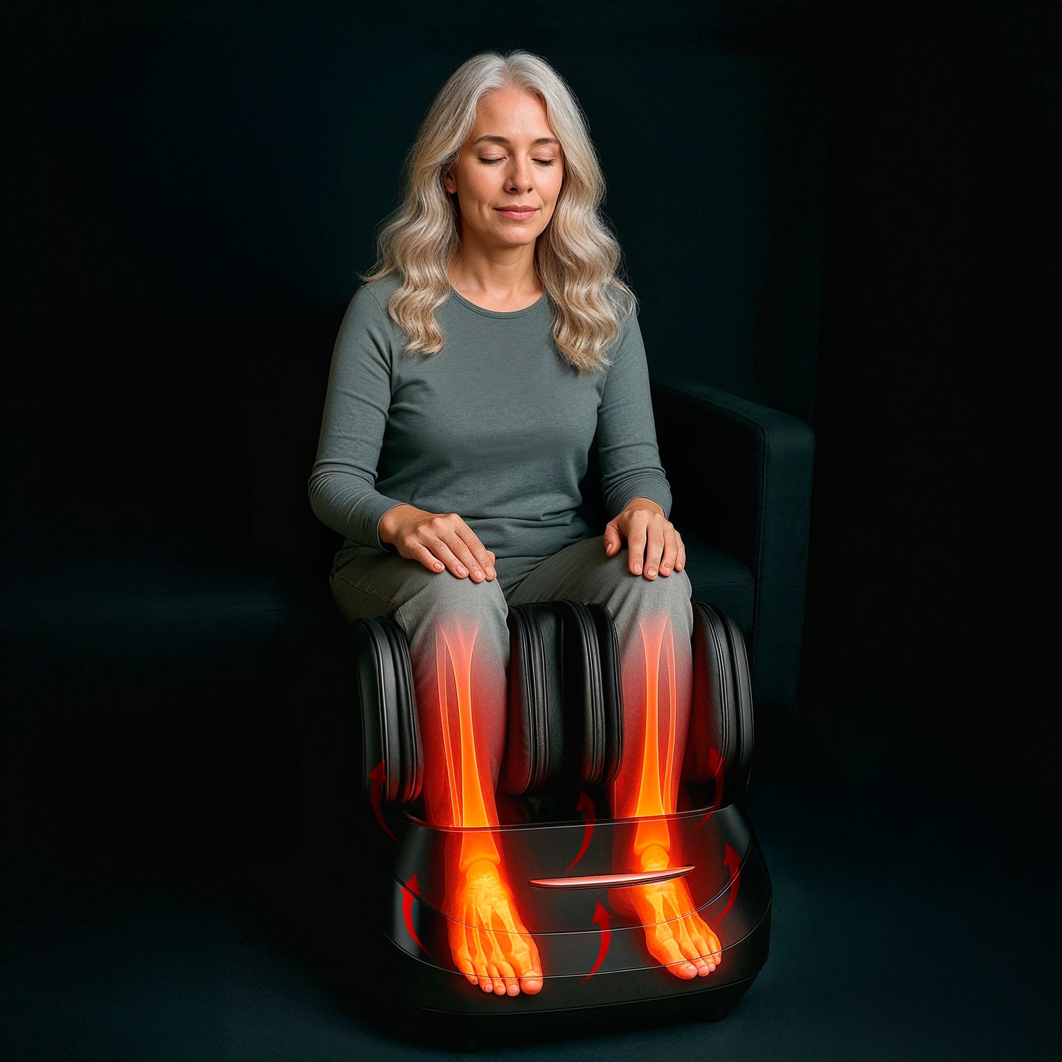 Anyone experiencing plantar fasciitis, foot pain, swollen ankles, poor circulation, or muscle fatigue from standing or walking all day. It's ideal for people with diabetic neuropathy, arthritis, heel pain, or anyone recovering from foot/leg workouts. If you have active blood clots, open wounds on feet/legs, or severe vascular disease, or other conditions, consult your doctor before use.