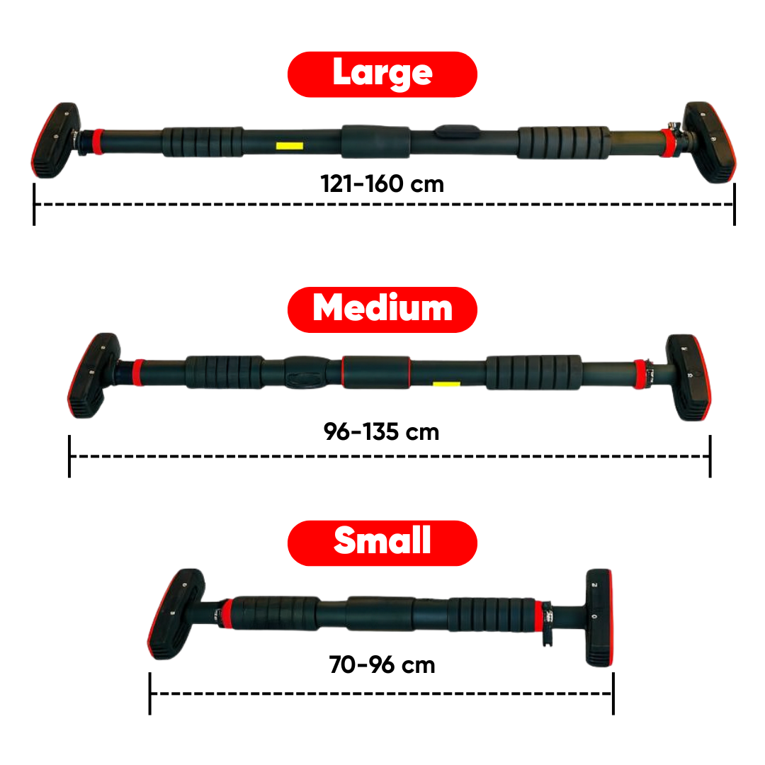 Each size adjusts within its range via the threaded telescopic rod. Measure your doorframe once. Order the right size. Install without returns or exchanges.