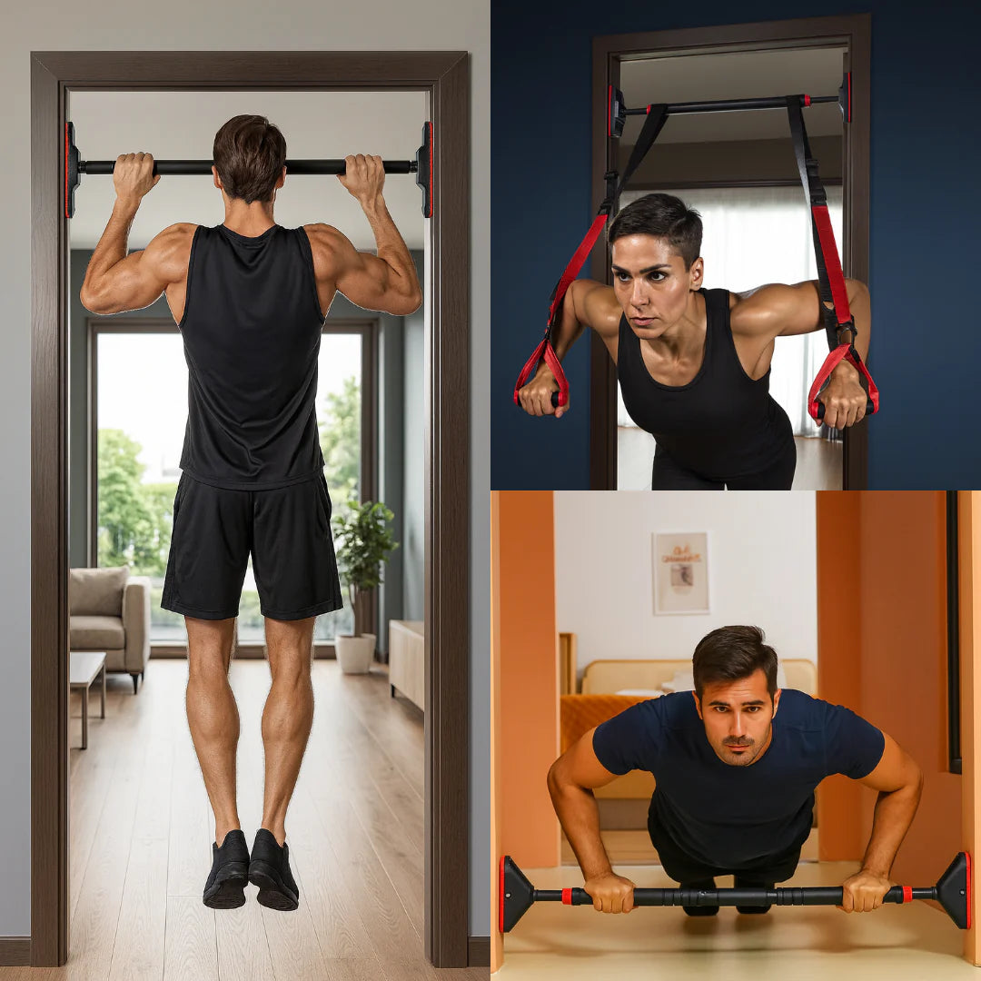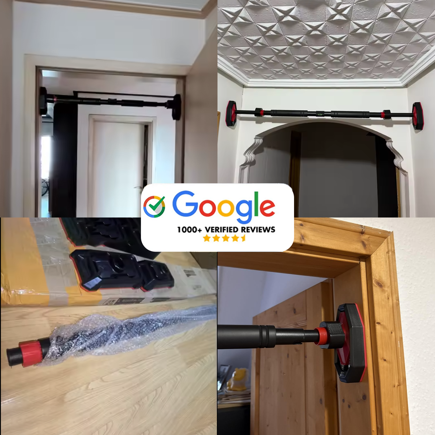 Most doorway bars rely on simple compression. Press against doorframe. Hope it holds. The harder you pull, the more force tries to collapse the system.